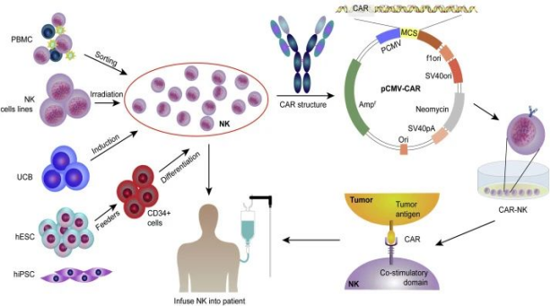 [2] Gong, Y., et al., Chimeric antigen receptor natural killer (CAR-NK) cell design and engineering for cancer therapy. Journal of Hematology & Oncology, 2021. 14(1): p. 73