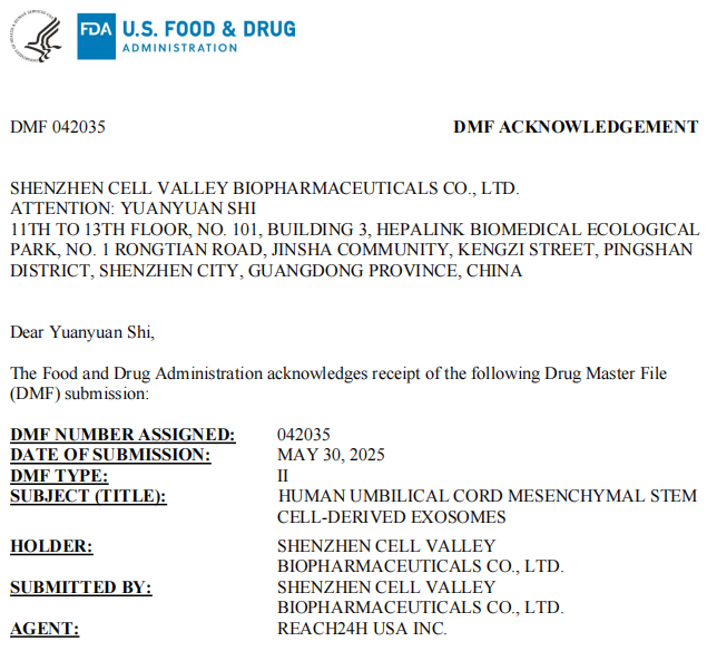 喜讯|深圳凯发K8外泌体获美国FDA DMF备案