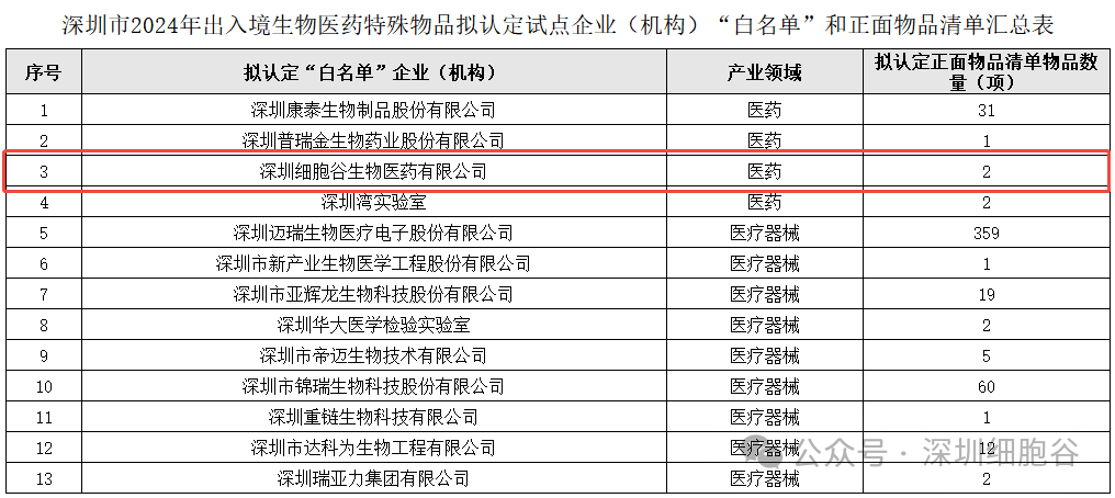 近期,深圳市出入境生物医药特殊物品联合监管机制联席会议办公室在深圳市发改委网站上公示了2024年出入境生物医药特殊物品拟认定试点企业(组织)&ldquo;白名单&rdquo;和正面物品清单。经过严格的材料核查、专家评审、现场核查、征求部门意见及联席会议审议等环节,全市第一批13家企事业单位获批&ldquo;白名单&rdquo;,深圳凯发K8顺利入选,其中细胞治疗的核心原料病毒载体等获批特殊物品出入境正面物品清单。
